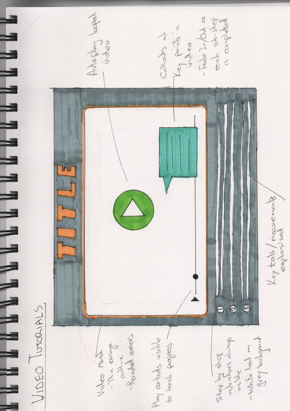 Learning a range of skills can prove to be difficult for anyone, but an infinitely diverse range of learners in the early years of high school is even more so. The use of instructional videos formed a key component of the course and to account for different learner needs it was imperative to develop a layout that was appropriate. The use of sketches and wireframes were crucial in the development of these layouts and organisation.